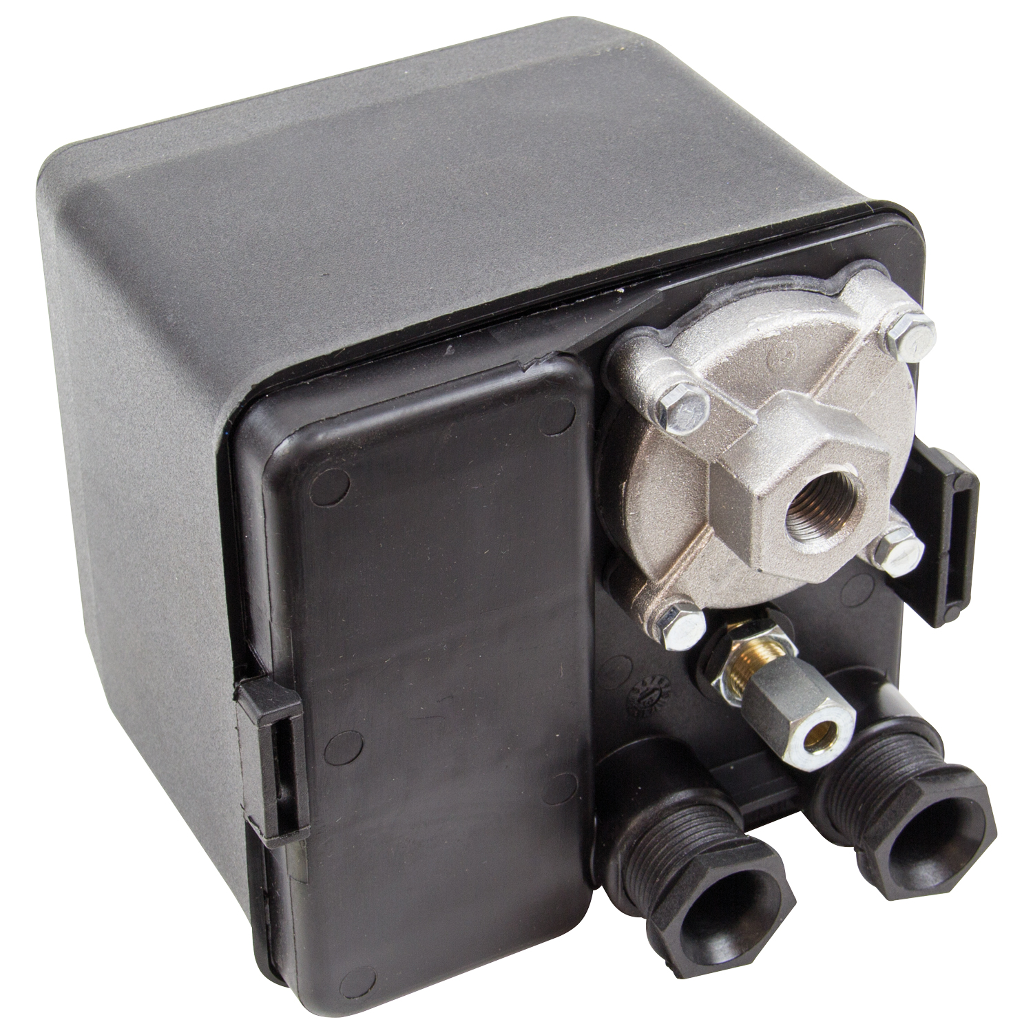 1/4″ BSP Air Pressure Switch with on/off Function. Four Port. Suitable for use with most single phase air compressors upto 16 amp current.